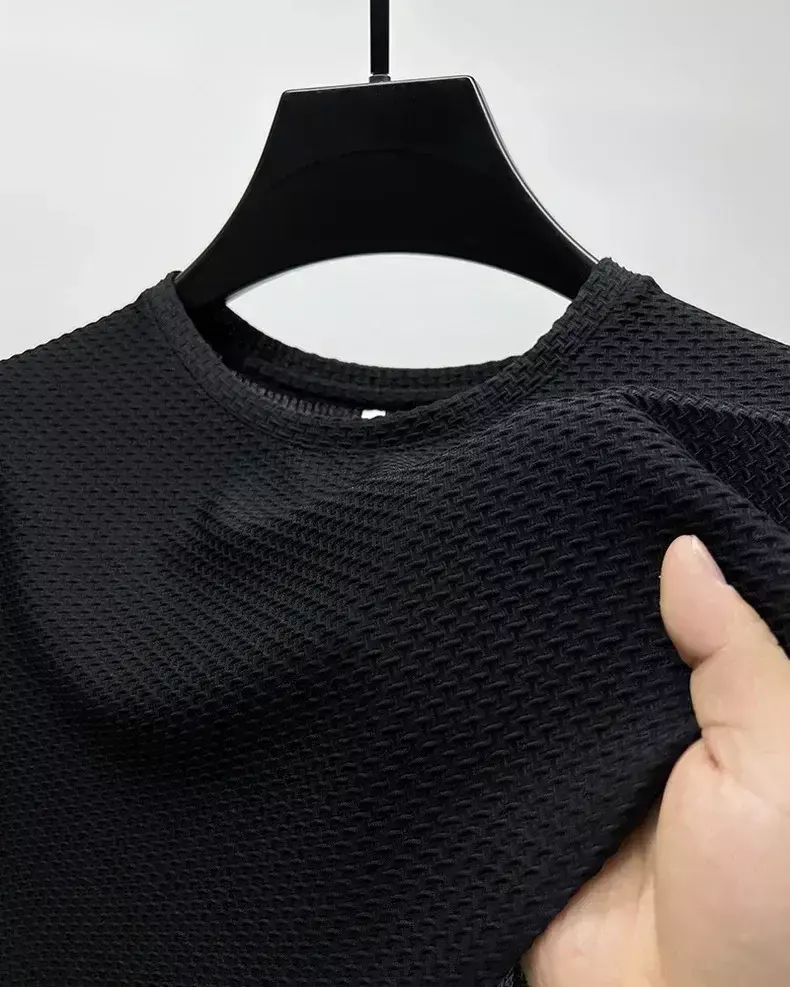 Confeccionada em Microfibra Dermal de Alto Padrão, ela oferece toque ultramacio, sensação gelada e respirabilidade avançada — perfeita para rotinas intensas, ambientes quentes e eventos mais elegantes.